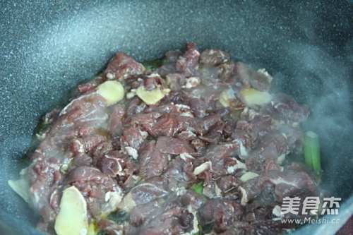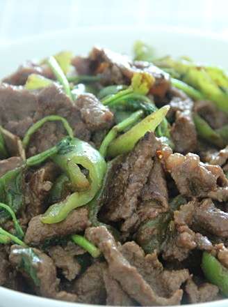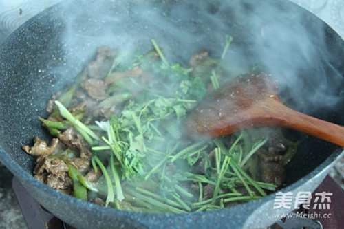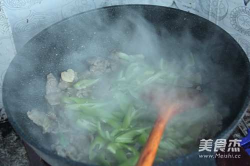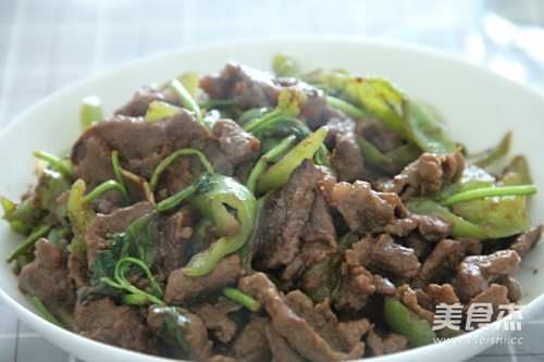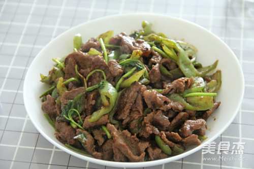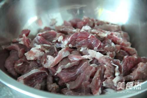 热锅起油,4分热时加入牛肉打散,炒至变色