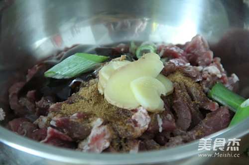 加姜、葱、料酒、蚝油、半个鸡蛋清抓匀,腌制20分钟