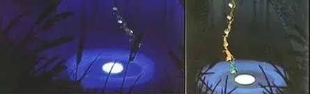天上的月亮越来越弯了,所以水坑里面的月亮也变瘦了