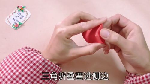 1卡纸角对折,三个角折向中心。