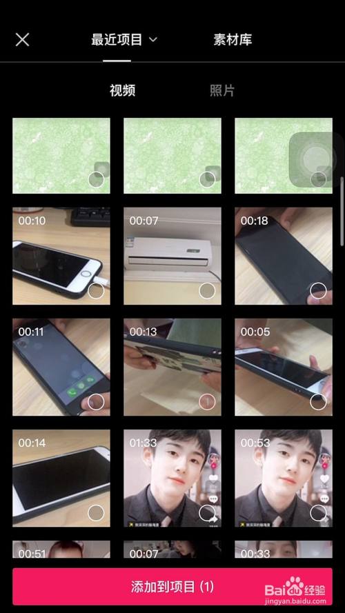 紧接着勾选视频并点击添加到项目。