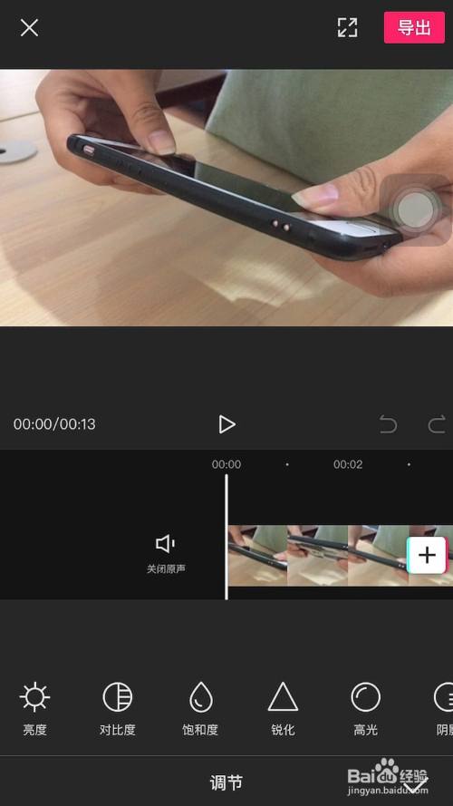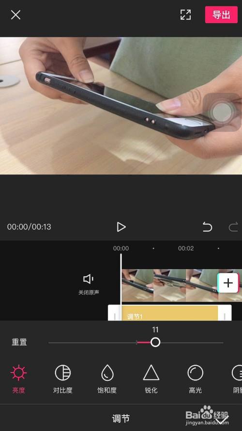 5、然后再点击剪辑栏目里的调节。
