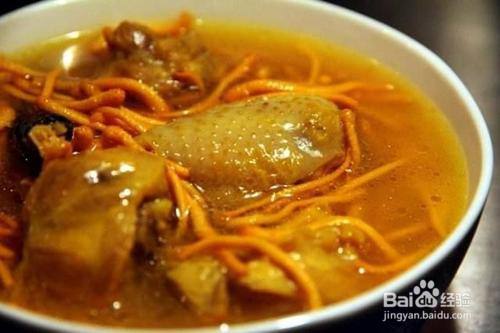 第三,可以制作虫草花乳鸽汤,制作时准备虫草花10克、乳鸽1只、花胶30克、生姜1片,然后将乳鸽处理干净,虫草花、生姜洗净,花胶浸发,切丝洗净,全部用料放入容器,加适量开水,少许酒,加盖,隔水炖3小时,调味后即可