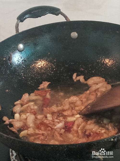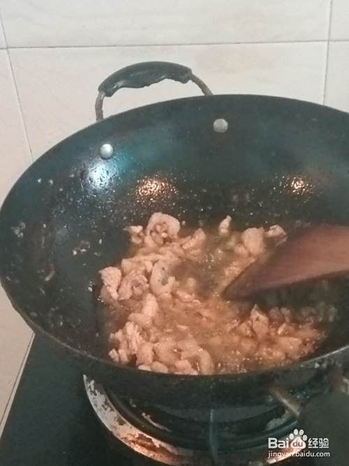 锅里放油烧热,把切好的瘦肉先放入锅中炒一下。