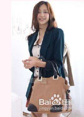 3、卡其色时尚手提斜跨单肩搭配蓝色外套