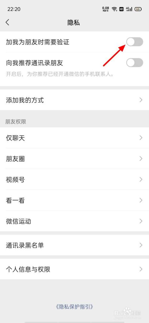 打开微信,在我选项下,打开设置选项。在隐私选项下,打开加我需要验证选项,即可完成设置。