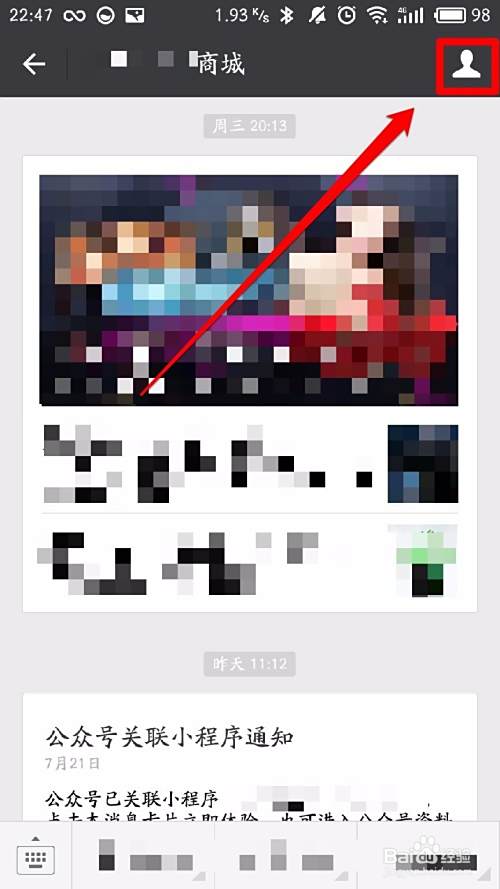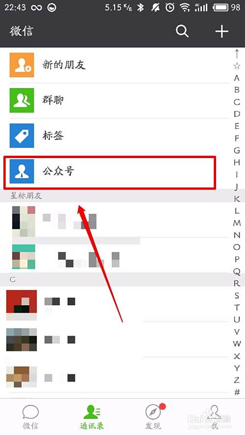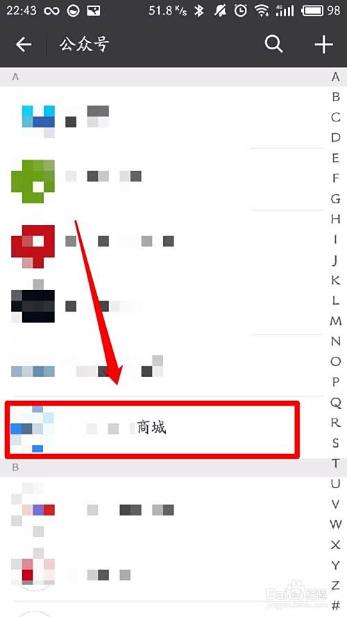 在公众号列表的界面找到你要屏蔽的公众号,轻轻点击一下它,进入公众号的界面中