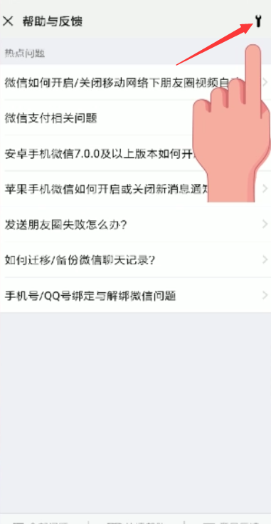 2点击“帮助与反馈”,点击右上角的小扳手图标。
