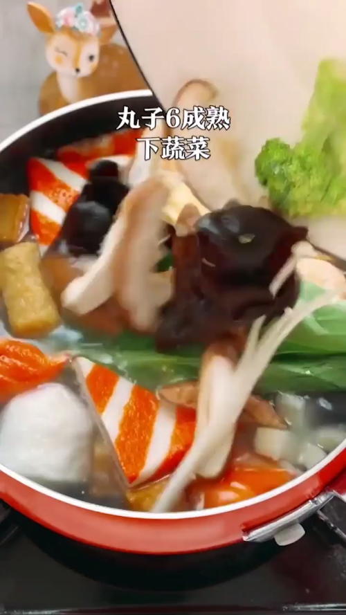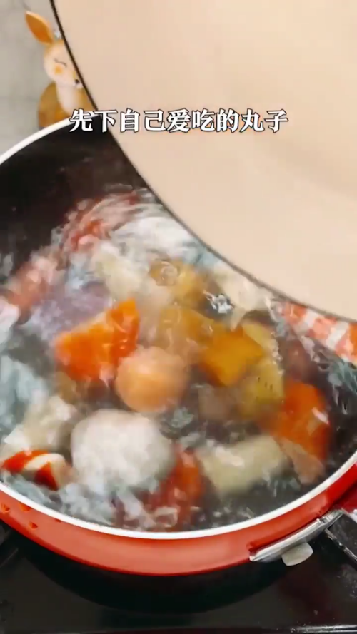 锅中烧水,放入喜欢吃的丸子。