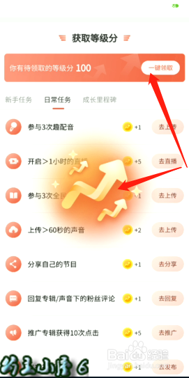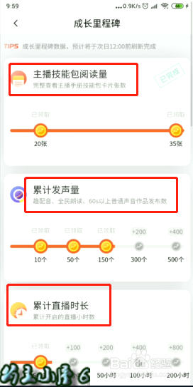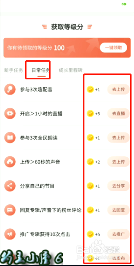 这里需要注意的事,成长任务的要求一定要了解,这样才能更好的完成任务。如:累计发声量,这里要求的发声包括配音,朗读和超过60s的声音上传。