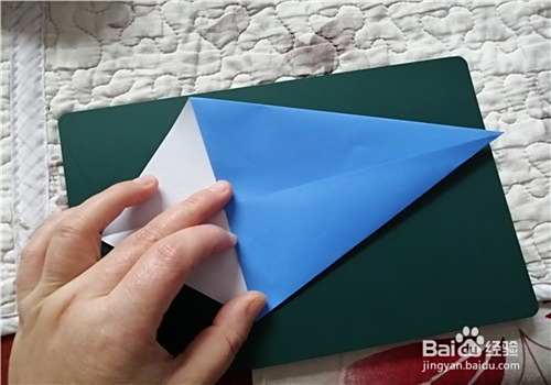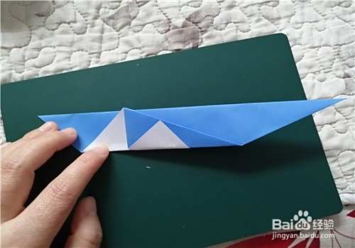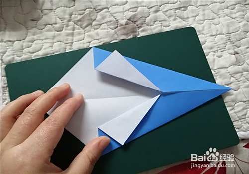 接下来,我们把下面的角向上折,把后面的角向后折,如图。