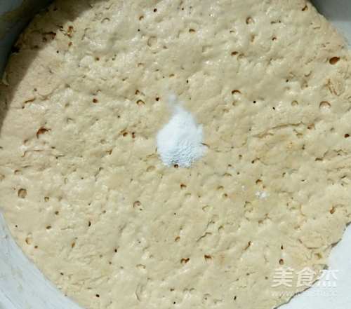 1按面粉比例盛出面,加入酵母和白砂糖,冷水和面饧发。这是发好的面加入小苏打揉匀揉光滑。
