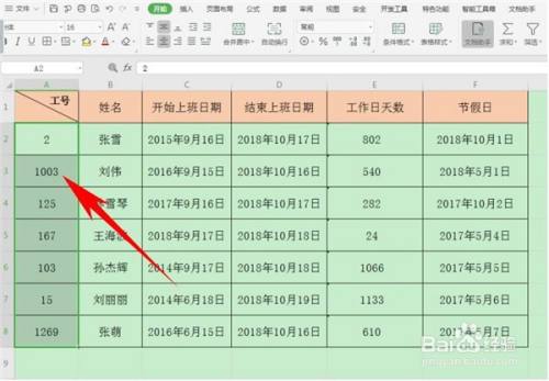 可以看到,工号2变为0002显示,工号长度全部保持一致,如下图所示: