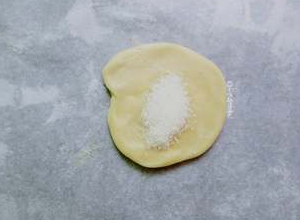 两边像中间挤压,按扁擀开包入白糖