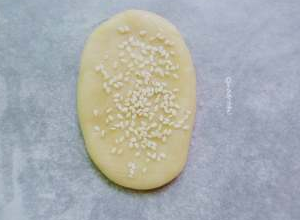 用手按扁沾点水粘上芝麻,烤箱200度20分钟!