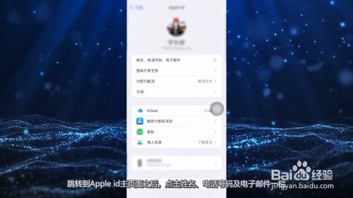 跳转到Apple id主页面之后,点击姓名、电话号码及电子邮件一栏。