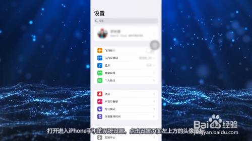 打开进入iPhone手机的系统设置,点击设置页面左上方的头像图标。