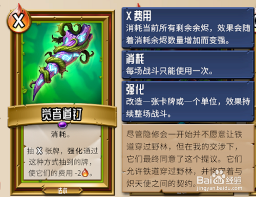 觉者道钉,觉者法术卡牌原本法力消耗就比较低,使用道钉之后就可以让该职业的法术卡牌变成0费用,随机性比较大,需要尽量压缩牌库才能发挥它原本的作用。