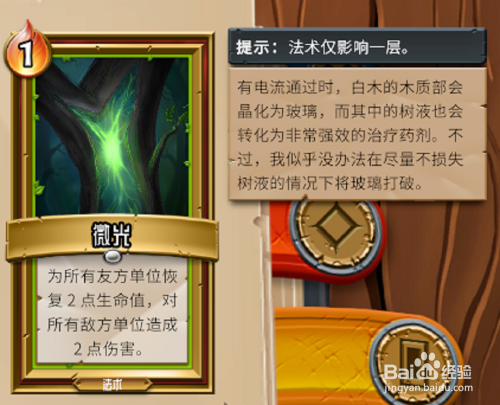 微光,觉者唯一一张可以主动用于群解的卡牌,是玩这氏族的最重要的卡牌之一,通常觉者无法通关的原因不是我方单位被击败,而是水晶被敌人所拆除。