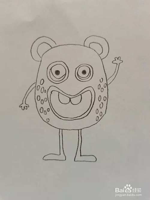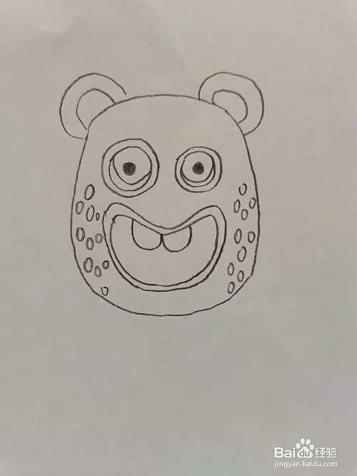 第三步,我们画小怪兽的眼睛和嘴巴。
