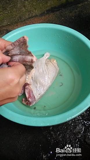 鸭肉洗干净,去除毛和其他杂质,切块待用。