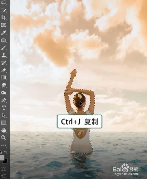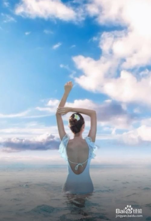 首先找到主体,复制人物,拖入蓝天素材,更改图层顺序,使用橡皮擦工具处理边缘。