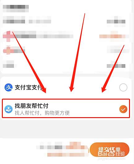 选择下拉页面后,点击找朋友帮忙付。