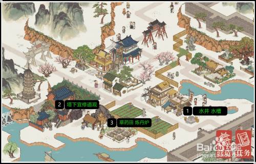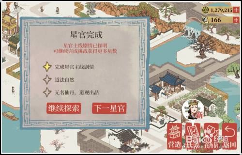 折威星官内主线任务与其他任务不能同时进行,1次只能进行一项任务。要在指定位置修建道观,根据任务提示“塔下宜修道观”建于塔台阶下(如图);再修建草药田、炼丹炉各1和其他娱乐类建筑,总繁荣度达600即可攒3克星.