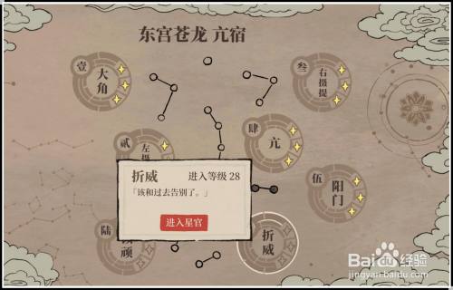 切换到鸡鸣山地图,点古观星台-东宫苍龙-亢宿,共7个星官满21颗星能得到特殊建筑。点第壹个关卡大角“进入星官”,基础等级要求25级才可进入。