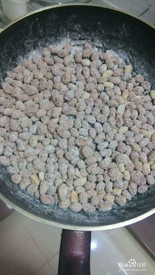 花生刚挂糖时是很稠的一坨,但是不要着急哟,分三次加入淀粉每次不要加入太多,一边加入淀粉一边翻炒花生,渐渐的你会发现花生变成了白色的,一粒一粒的,和刚下锅时全部不一样了,这就预示着马上要大功告成了哦。