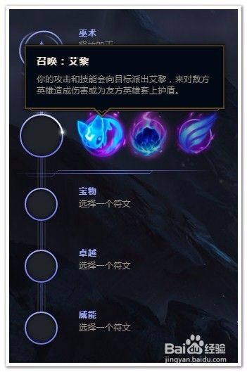 选择“巫术”作为“主系符文”(强化技能和资源控制)。