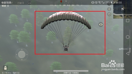 第三步打开降落伞之后,可以看到我们慢慢的落到空旷地上,如下图所示: