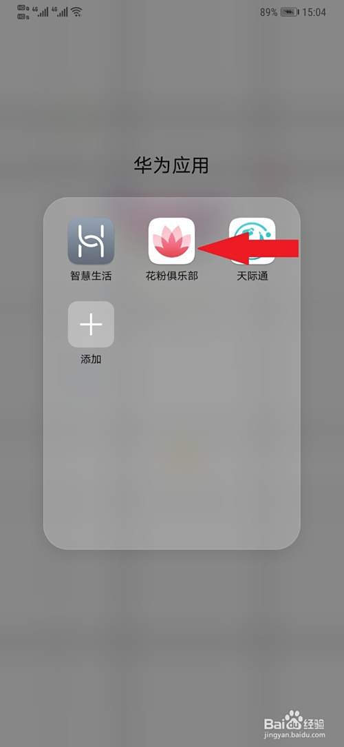 首先在主屏幕查找“华为应用”,打开查找“花粉俱乐部”。