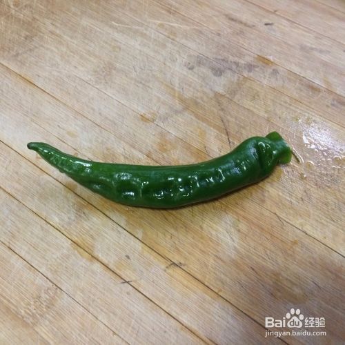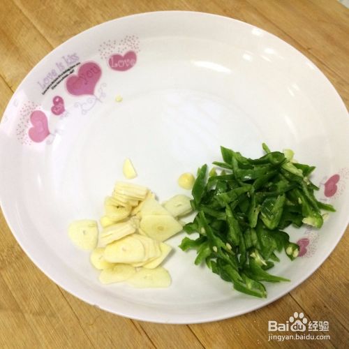 首先,取一个青椒和少许大蒜,将其洗净后,大蒜切成小片,青椒切成丝状,备用。