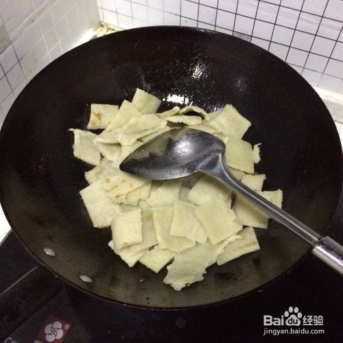 在腊肉炒得发黄以后,倒入刚刚准备的洋芋馍馍片,并使劲进行翻炒,直至洋芋馍馍炒出淡淡的洋芋香味。
