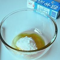 将面粉和泡打粉过筛到碗中,搅拌至无干粉的面糊状。