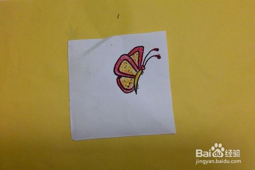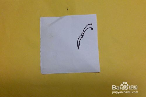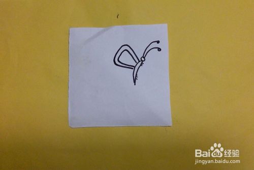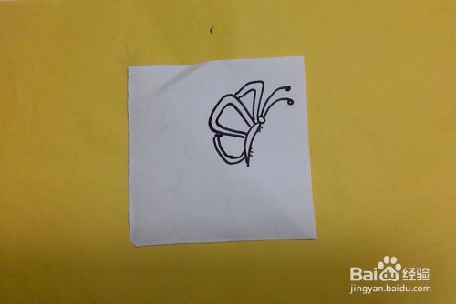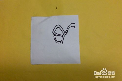 如图所示,准备任意材料纸,在适当的位置开始画蝴蝶的身体部分。