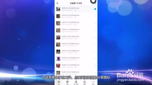 打开百度网盘文件列表,勾选需要分享的文件,点击页面底部的分享图标。