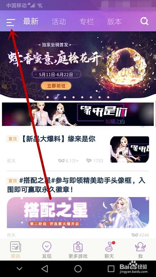 接着打开炫舞小灵通登陆进去,然后点击右上角的三条杠。