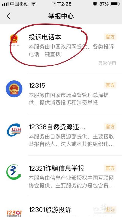 选择第一项的投诉电话本选项打开。