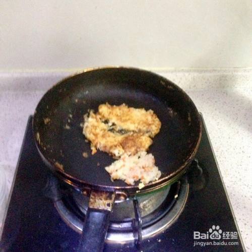 差不多看表面凝固了,就用锅铲试试看,锅底的那一面是不是已经没有粘连了,然后差不多就可以翻面了。铲子一定要轻,还可以用筷子帮忙把饼子翻面。一定要注意看,不然就像这样看起来丑丑的了。不过其实多煎一会儿比较香哦