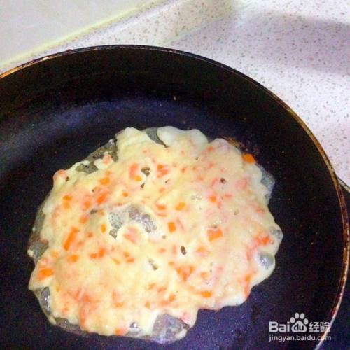 这是我做的加胡萝卜碎的豆渣饼,已经慢慢开始凝固了。