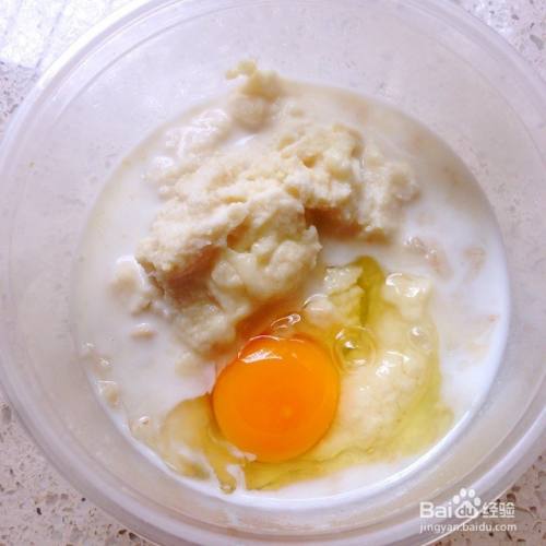 豆渣+鸡蛋+一点点牛奶调匀,这个时候可以再根据口味自己加一点盐或者糖来调匀。或者做好出锅以后再马上撒上,那样立体的口感会更棒哦