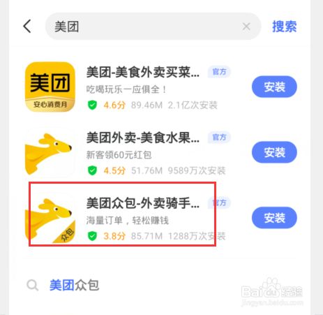 第二:找到【美团众包】客户端点击进入客户端详情介绍。