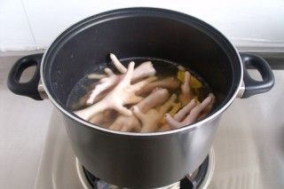 把鸡爪放入,大火烧开,小火煮10分钟。