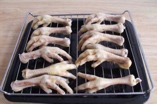煮好的鸡爪冲凉水后,晾干。