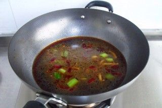 放入料酒,生抽,盐,煮开。