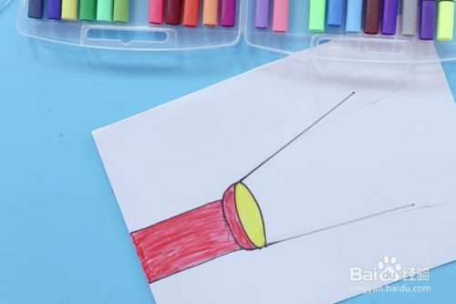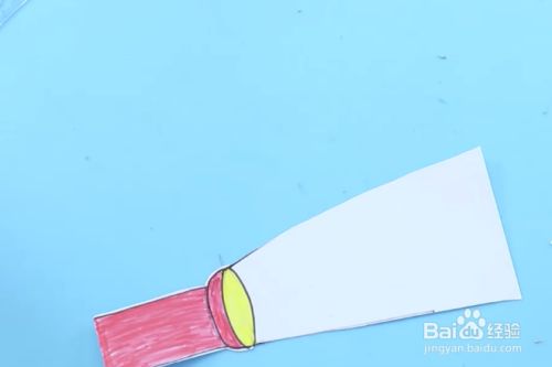 用铅笔画一个手电筒;用马克笔加深边缘;接着对手电筒染色。