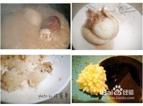 右下角的片片还是借自大食堂生产队长,他用的是白灼的方法吃这个章鱼蛋,所以一粒粒的看起来更直观些