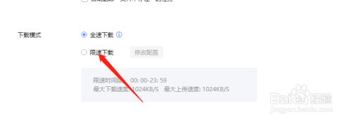 找到下载模式旁边的限速下载,并勾选上,如图所示